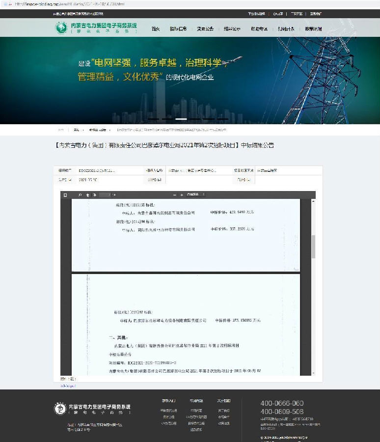 我公司中標-2021年內蒙古電力(集團)有限責任公司巴彥淖爾內蒙古電力(集團)有限責任公司巴彥淖爾電業局2021年第2次招標項目