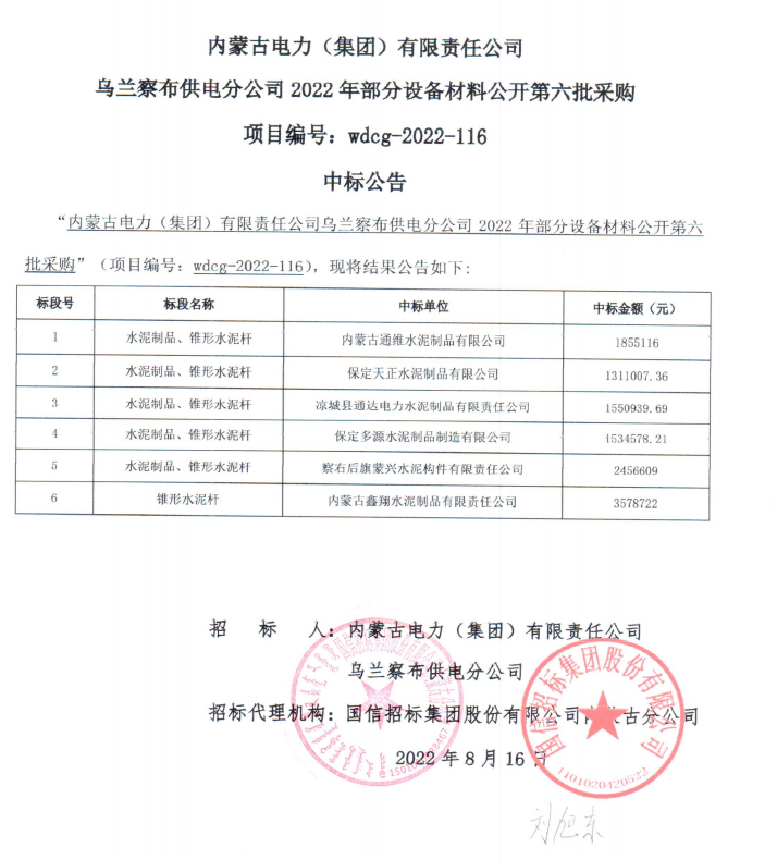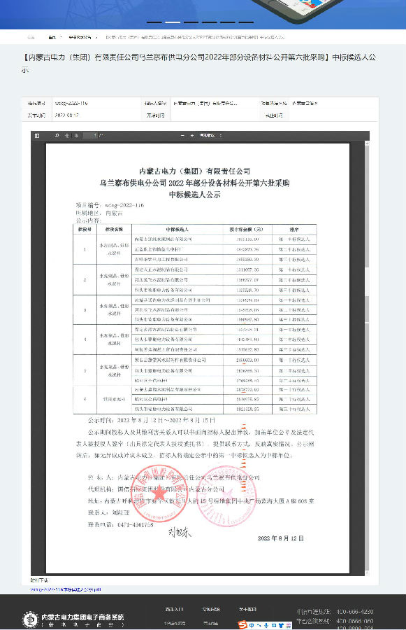 我公司中標(biāo)-錫林郭勒 供電分公司 2023 年生