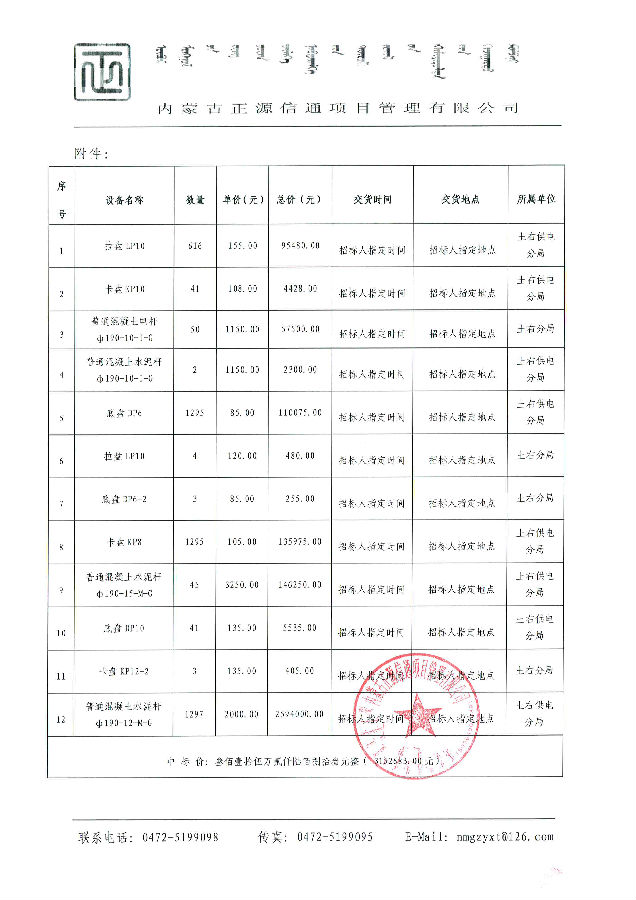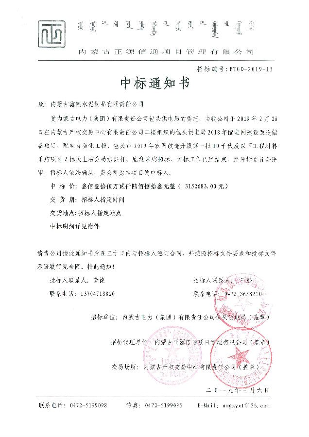 我單位于2019年3月6號中標包頭供電局2018年配電網建設改造儲備項目、配電自動化工程、包頭市2019年農網改造升級第一批10千伏及以下工程材料采購項目2標段