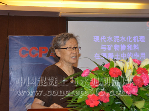 清華大學廉慧珍教授做了《現(xiàn)代水泥水化機理與礦物摻和料在混凝土中的作用》的報告